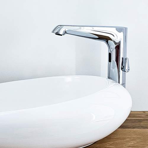 Zwei Aspekte waren bei der Ausstattung der neuen WC-Anlagen in der Vinothek der Kellerei Kaltern maßgeblich: Topmodernes, ästhetisches Design und innovative Technik, die hohen Nutzungskomfort bietet. Für die Waschtische wünschten sich die Betreiber eine Armaturenlösung, die sich optisch harmonisch in das geplante Interior Design einfügt und zugleich die Nutzerhygiene beim Händewaschen optimiert. Auch der Nachhaltigkeitsgedanke war für die Wahl der Sanitärprodukte ausschlaggebend. Die neuen Armaturen sollten daher besonders sparsam im Wasserverbrauch sein.