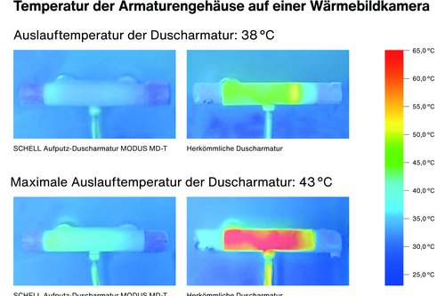 Um Nutzer bestmöglich vor Verbrühungen und Verbrennungen zu bewahren, wurde die Aufputz-Duscharmatur MODUS MD-T von Schell mit zwei durchdachten Technologien ausgestattet.