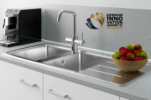Ausgezeichnet in der Kategorie „Excellence in Business to Business – Building & Elements“ punktet GRANDIS E in elegant-zeitlosem Design als vernetzungsfähige, elektronische Armatur mit vielen Vorteilen. So ist es die besondere Kombination von Einhebelmischer und Infrarot-Auslösung, die die Küchenarmatur so hygienisch und komfortabel macht. Dank der berührungslosen Auslösung wird die Verunreinigung der Armatur durch verschmutzte Hände vermieden und so Nutzerhygiene unterstützt. Bei längeren Nutzungsunterbrechungen kann die elektronische Küchenarmatur mit automatischen Stagnationsspülungen für den nötigen Wasserwechsel sorgen. Unabhängig der Stellung des Mischerhebels werden dabei immer sowohl die Kaltwasser- als auch die Warmwasserleitung gespült. Intelligente Produkteigenschaften wie eine Schwenkbegrenzung und eine Heißwassersperre sorgen für zusätzliche Sicherheit bei der Benutzung.