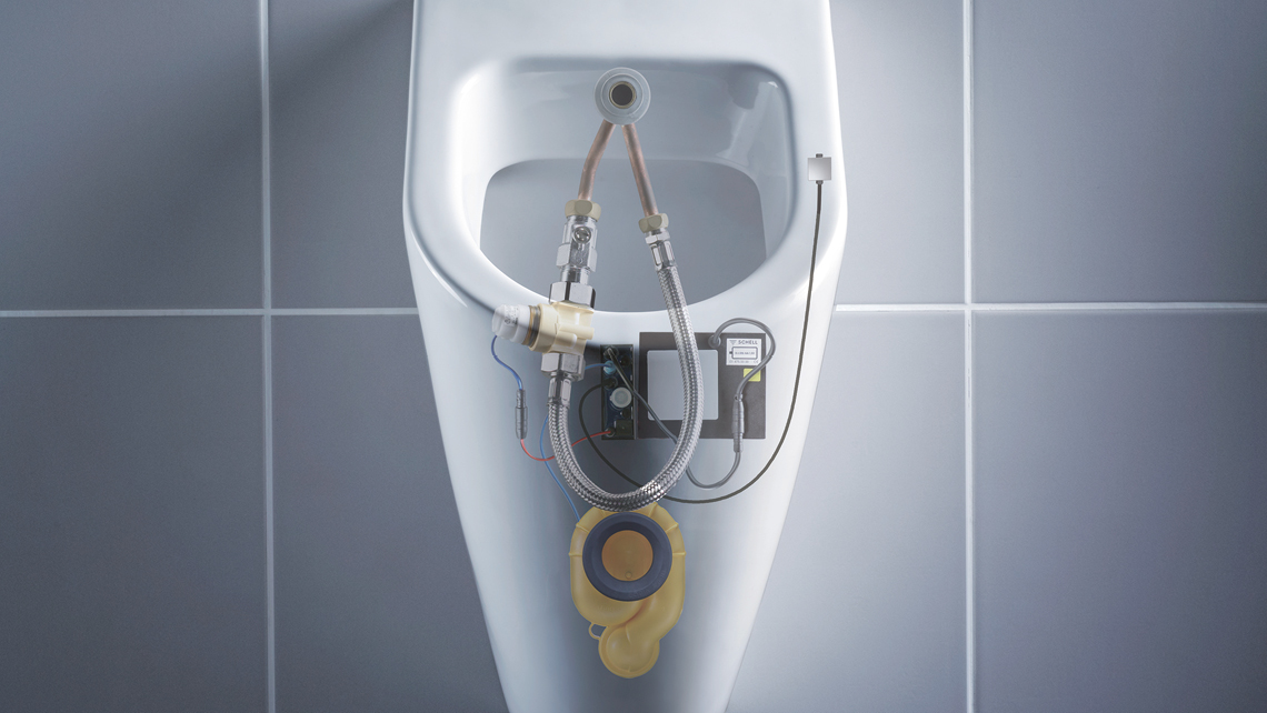 Ha egy régi kézi szerelvényt kell kicserélni, akkor azt a SCHELLTRONIC infravörös vezérlésű, érintésmentes, falon kívüli megoldással lehet a legegyszerűbben elvégezni további átalakítási munkák nélkül. Az érintésmentes aktiválás kifogástalan higiéniát és mindig tisztára öblített vizeldét biztosít a felhasználó számára. Az öblítési mennyiség 1,0 és 4,0 liter között állítható, és ennél a szerelvénynél is különlegesség az integrált stadionprogram: nagy gyakoriságú használat esetén a vezérlés lecsökkenti az öblítési mennyiséget, amíg ismét normál működést nem érzékel. A strapabíró házból álló és integrált pangó víz elleni öblítéssel rendelkező szerelvény alkalmas a stadionokban és minden egyéb középület, kormányzati és kereskedelmi célú épület szaniterhelyiségeiben való használatra. Ez pangó víz elleni öblítés gondoskodik az automatikus öblítésről 24 órával az utolsó indítás után.