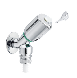 Ha a kulcsot az óramutató járásával megegyező irányba elfordítja és a fogantyút lenyomja, a vízvételi hely blokkolásra kerül. A kulcs újbóli eltávolításához a kulcsot először vissza kell fordítani az eredeti helyzetébe. A zárt állapot most már biztosított.