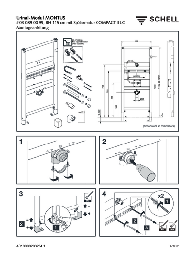 - Rögzítő alkatrészek vizelde felszereléshez (M 8 x 100 mm-es rögzítő pálca, védőtömlő, műanyag peremes hüvelyek, anyák, alátétek, takarósapkák)