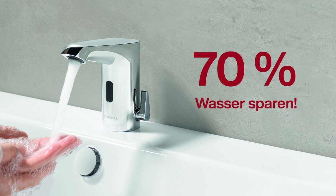 A magas víz- és energiafogyasztás egyik fő oka, hogy akkor is folyik a víz, amikor arra nincs feltétlenül szükség. Például a legtöbb felhasználó a mosdónál nem zárja el a vizet, amikor szappanozza a kezét. A (meleg) víz megszakítás nélkül folyik, így feleslegesen pazarolják. Egy másik eset: Ha nem zárják el teljesen a kart kézmosás után, az is növeli a vízfogyasztást. Ez két olyan helyzet, amelyek elektronikus, infravörös szenzor által vezérelt SCHELL szerelvényekre átállva hatékonyan elkerülhetők. Itt csak akkor folyik a víz, amikor ténylegesen szükség van rá. Ha az ember az intelligens szenzor érzékelési tartományába tartja a kezét, a víz folyni kezd, és amint elveszi a kezét az érzékelési tartományból, a vízfolyás leáll. A szenzorral vezérelt szerelvényekkel a víz- és energiafogyasztás akár 70%-kal csökkenthető.