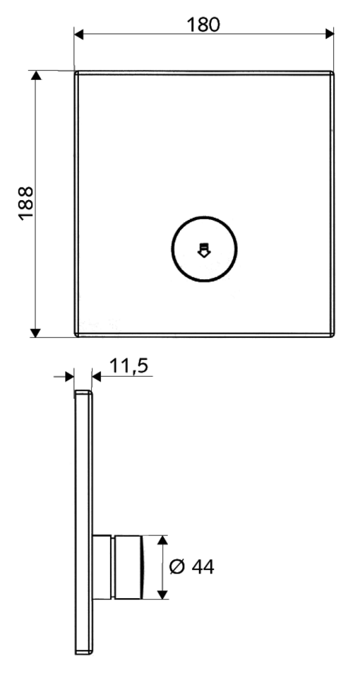 - Az előlap méretei: B 180 mm x m 188 mm x m 11,5 mm