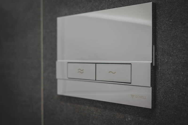 Ook de wc-bedieningsplaten MONTUS BOARD werden in de dames- en heren-wc’s telkens eenmaal geplaatst. De bedieningsplaten met verchroomde frontplaat beschikken over een waterbesparende spoelfunctie met twee volumes: de aanduiding met een enkel of dubbel golfsymbool op de toetsen voor de spaar- of hoofdspoeling maakt een intuïtieve bediening mogelijk.