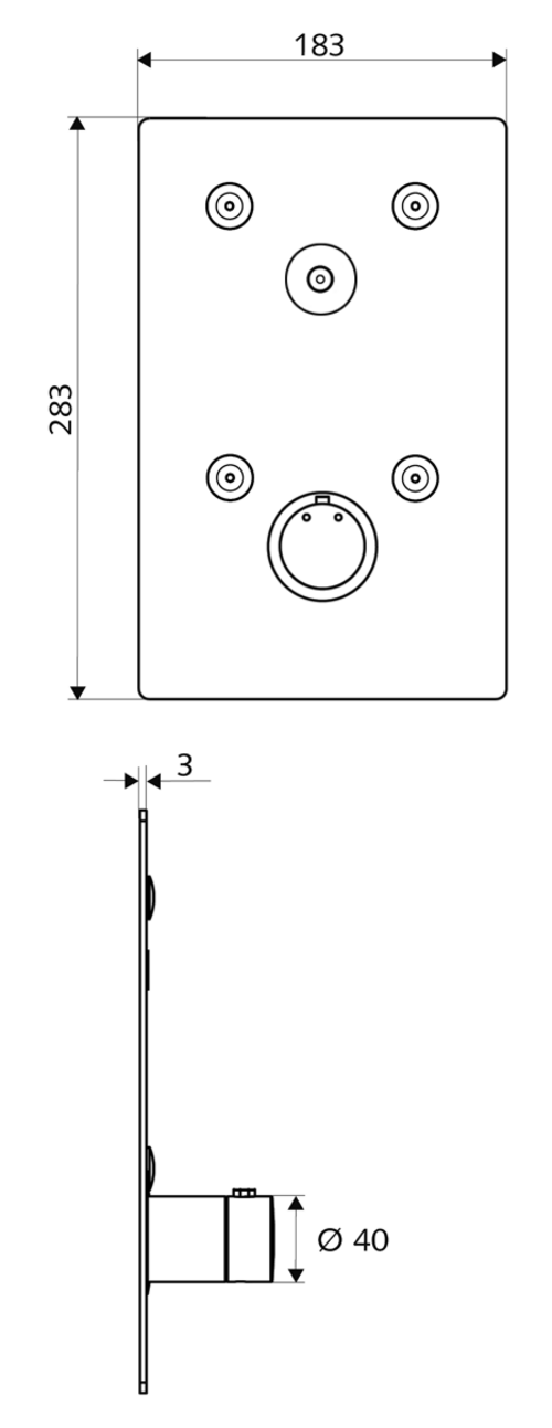 - Wymiary płyty czołowej: B 183 mm x H 283 mm x T 3 mm