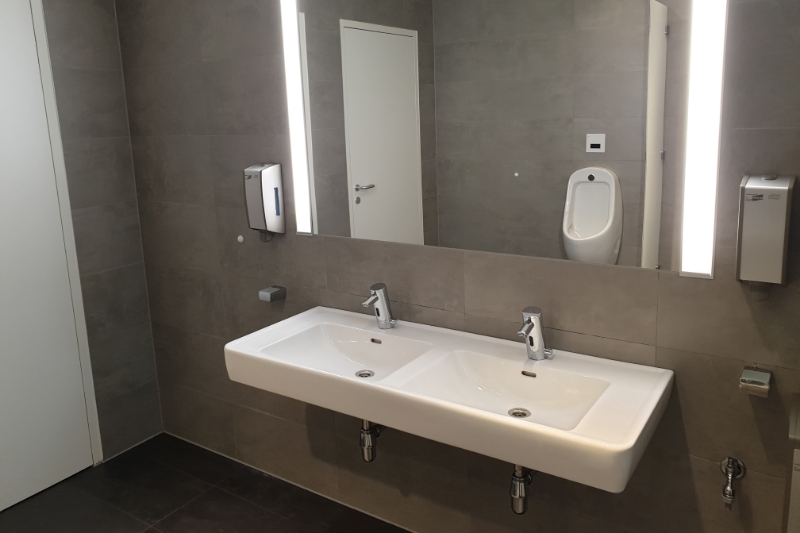 W pomieszczeniach sanitarnych WIFI Steiermark zainstalowano ponad 100 sztuk elektronicznej armatury umywalkowej PURIS E HD-M. Minimalistyczny design armatury doskonale wpisuje się w nowoczesne wnętrza instytutu. Żądaną temperaturę można ustawić w łatwy sposób za pomocą umieszczonego z boku regulatora temperatury. Indywidualne parametry armatury, takie jak np. zasięg czujnika, blokada na czas sprzątania lub spłukiwanie ciągłe w celu dezynfekcji termicznej można zaprogramować zbliżeniowo bezpośrednio na armaturze. Opcjonalnie można ustawić również zbliżeniowo spłukiwania antystagnacyjne co 24 godziny lub po upływie 24 godzin od ostatniego spłukania. Spłukiwania antystagnacyjne pomagają w utrzymaniu jakości wody pitnej i zmniejszają ryzyko krytycznego namnożenia się bakterii. Oprócz poprawy higieny użytkowników inteligentna technologia czujnikowa zastosowana w armaturze umywalkowej posiada kolejną istotną zaletę: W porównaniu do standardowej jednouchwytowej armatury z mieszaczem elektroniczna armatura umywalkowa firmy SCHELL, taka jak PURIS E pozwala zaoszczędzić nawet do 70 procent wody i energii. W ten sposób armatura firmy SCHELL przyczynia się skutecznie do bardziej zrównoważonej i ekonomicznej eksploatacji budynku.