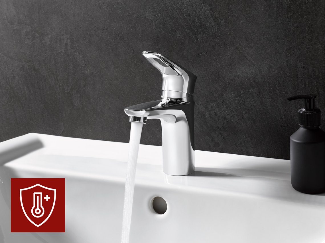 Dahili ThermoProtect teknolojisi, onunla donatılmış tüm MODUS armatürleri için haşlanmaya karşı güvenilir koruma sağlar. Lavabo armatürünün kolu orta konumdayken, su 32°C'lik hoş bir sıcaklığa sahiptir – özellikle fiziksel yapıları nedeniyle kol konumunu tam olarak ayarlayamayan kişiler için avantajlıdır.
